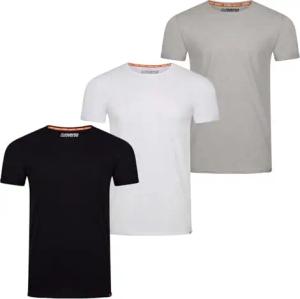 Tshirt Herren Regular Fit RIVLenny 3er Pack Set Rundhals Kurzarm Sommer Tee Shirt leichte Baumwolle Flammgarn Einfarbig Schwarz Weiß Grau XL, Größe:XL, Farbe:Farbmix 3