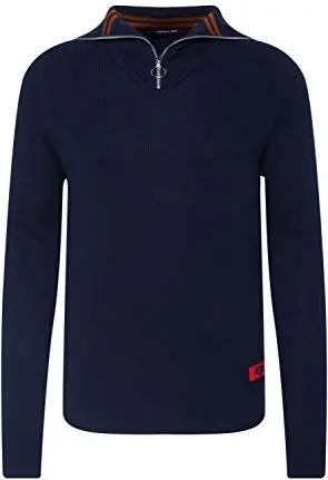 Scotch & Soda Herren Lightweight Rib Knit Pullover with high Zip-up Collar Unterhemd, Blau (Night 0002), Small (Herstellergröße: S)