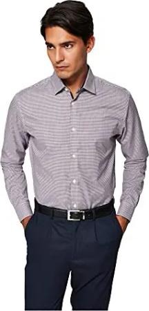 Camicia Manica Lunga Uomo Selected Micro quadretto Rosso/blu
