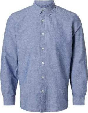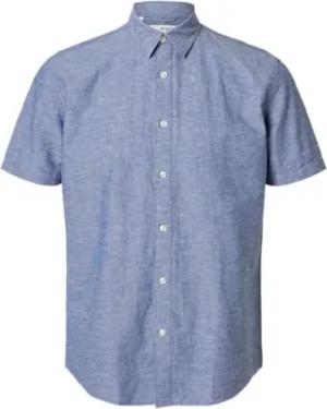 SELETED HOMME Herren Slhreg-New Linen Shirt Noos Kurzarmhemd, Medium Blue Denim, L EU