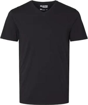 Herren Selected V-Ausschnitt T-Shirt | Einfarbiges Basic Kurzarm Shirt SLHNEWPIMA | Stretch Baumwolle, Farben:Schwarz, Größe:XL