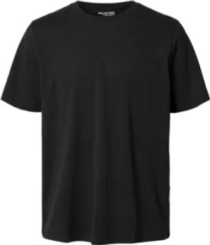 Herren Selected Basic T-Shirt | Einfarbiges Rundhals Kurzarm Shirt SLHNEWPIMA | Jersey Stretch Baumwolle, Farben:Schwarz, Größe:XL