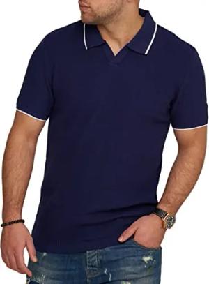 . Herren Kurzarm Poloshirt Feinstrick Polo T-Shirt Zip-Neck Shirt 4672-Navy-M