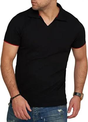 . Herren Kurzarm Poloshirt Feinstrick Polo T-Shirt 4669-Schwarz-L