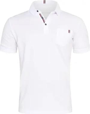 . Herren Kurzarm Poloshirt Feinstrick Polo T-Shirt Color-Block Shirt 4668-Weiß-XL