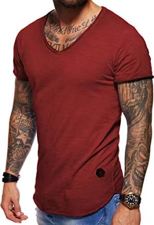 . Herren Oversize Kurzarm Basic T-Shirt V-Neck 20-1720 (XXL, Weinrot)