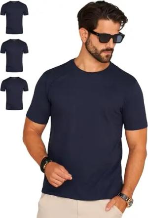 . Herren T-Shirt 3er Pack Rundhals Ausschnitt Kurzarm Basic Male Tee Leichtes Unterziehshirt O-Neck Oberteil DC_B-100-O-Navy-L