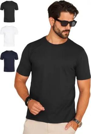 . Herren T-Shirt 3er Pack Rundhals Ausschnitt Kurzarm Basic Male Tee Leichtes Unterziehshirt O-Neck Oberteil DC_B-100-O-Schwarz-XXL