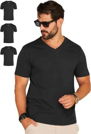 . Herren T-Shirt 3er Pack V-Ausschnitt Kurzarm Basic Male Tee Leichtes Unterziehshirt V-Neck Oberteil DC_B-200-V-Schwarz-M