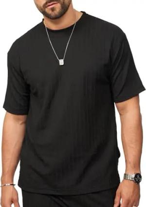 . Herren T-Shirt Kurzarm Regular-Fit Rundhals Male Tee Crew-Neck Feinstrick Männer Oberteil CR_4745-Black-L