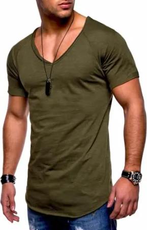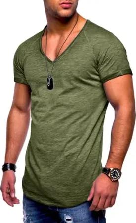. Herren Oversize Kurzarm Basic T-Shirt V-Neck 20-1720 Khaki S