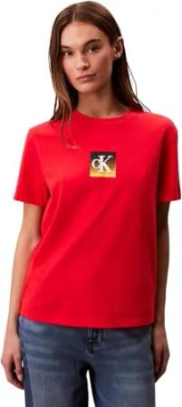 Damen T-Shirt Kurzarm Classic Boxed Monogram mit Logo, Rot (Tuscan Terra Cotta), XS