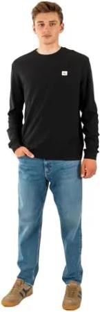 Herren Langarmshirt Waffle Badge Tee mit Rundhalsausschnitt, Schwarz (Black), S