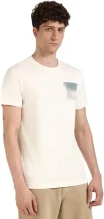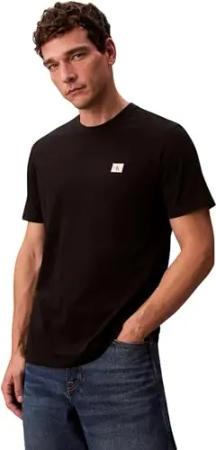 Herren T-Shirt Kurzarm Badge Turn Up Sleeve Rundhalsausschnitt, Schwarz (Ck Black), XS