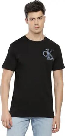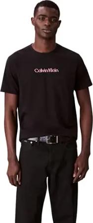 CK Herren-T-Shirt mit kurzen Ärmeln, Rundhalsausschnitt und Logo-Aufdruck vorne aus Reiner Baumwolle, Artikel KM0KM00971, BEH Pvh Black, M