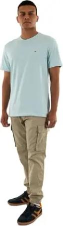 Herren T-Shirt Kurzarm Logo Tape Tee mit Rundhalsausschnitt, Blau (Tempest), S