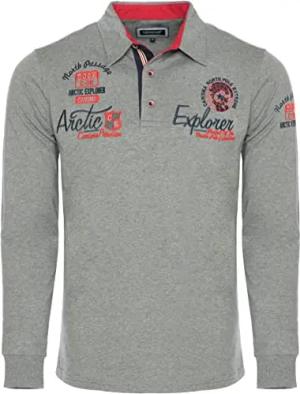 Langarm Poloshirt für Herren S, Grau 60% Baumwolle 40% Polyester • Herren Langarmshirt mit Stickerei • Angenehmes Regular Fit Longsleeve 3432 Grey S