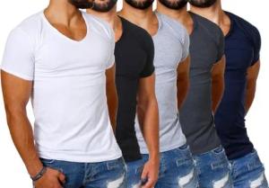 Herren Uni Basic T-Shirt mit tiefem V-Ausschnitt Vintage Destroyed Kragen Effekt einfarbig Dehnbare Passform, Grösse:S, Farbe:Weiß/Schwarz/Grau/Dunkelgrau/Dunkelblau (5er Pack)