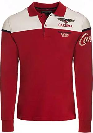 Langarm Poloshirt für Herren M, Rot 100% Baumwolle • Herren Langarmshirt mit Stickerei • Angenehmes Regular Fit Longsleeve 3432 Red M