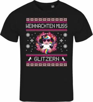 Herren T-Shirt mit Aufdruck Weihnachten muss Glitzern - Xmas Humorvoll, Größe:3XL, Farbe:schwarz