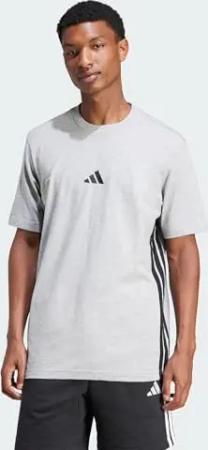 Men's Essential Three Stripes Single Jersey Tee, medium Grey Heather/Black, S