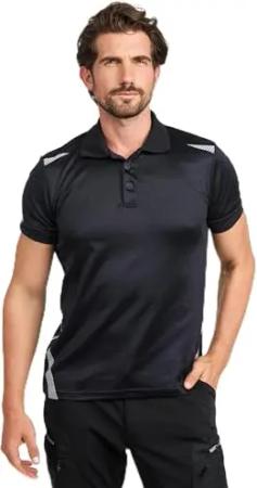 Workwear – Premium Poloshirt Herren – Funktionsshirt mit Reflektoren – Arbeitsshirt für Handwerk, BAU, Werkstatt & Industrie – atmungsaktives Gewebe – bequem & elastisch – Schwarz – XXL