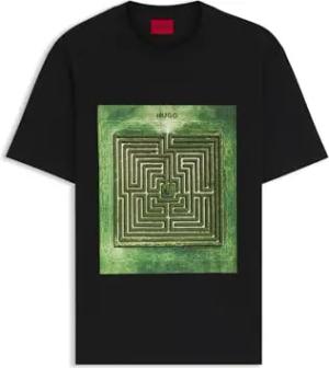Herren Dabryntee T-Shirt aus Baumwoll-Jersey mit Labyrinth-Print Schwarz001 L