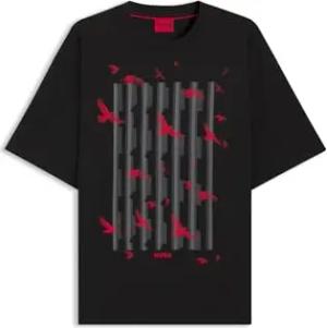 Herren Digraph T-Shirt aus Baumwoll-Jersey mit Vogel-Artwork Schwarz001 S