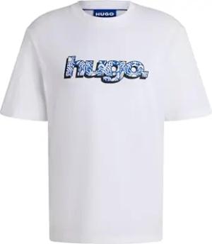 Herren Nico T-Shirt aus Baumwoll-Jersey mit blauem Logo-Print Weiß XXL