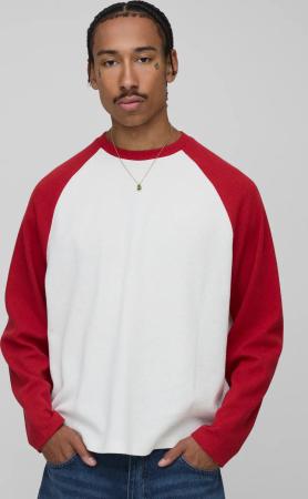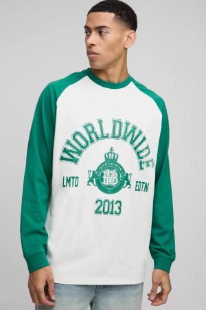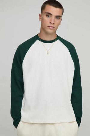 Langärmliges Oversize T-Shirt mit Kontrast Raglan Print - Grün - L, Grün