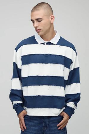 Langärmliges kastiges zerrissenes Oversize Rugby-Poloshirt