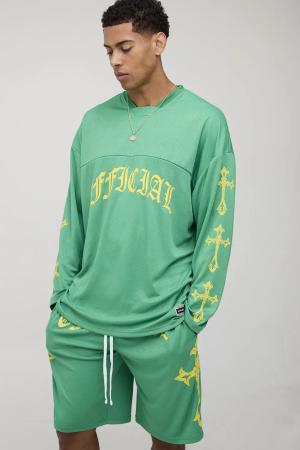 Langärmliges Oversize Official Mesh Hockey-Oberteil & Shorts - Grün - L, Grün