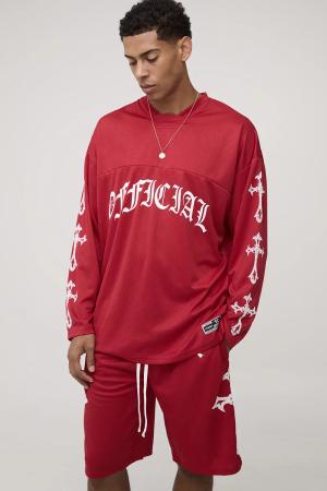 Langärmliges Oversize Official Mesh Hockey-Oberteil & Shorts - Rot - S, Rot