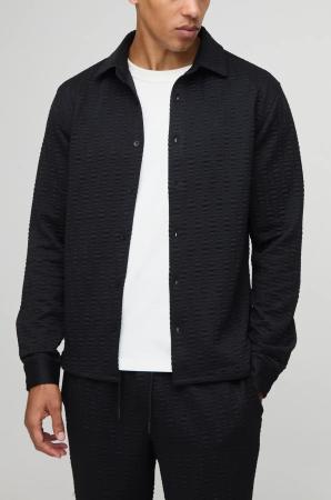 Langärmliges strukturiertes Stretch-Hemd und Hose - Schwarz - S, Schwarz
