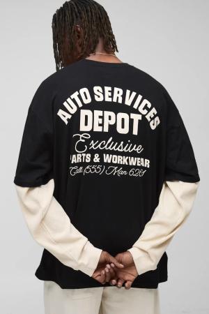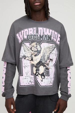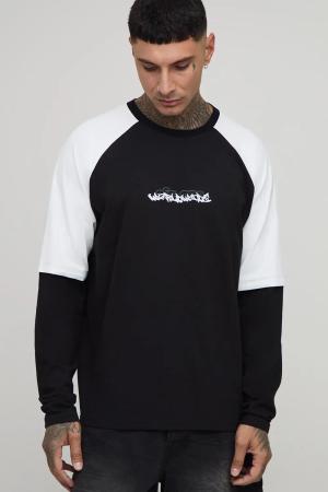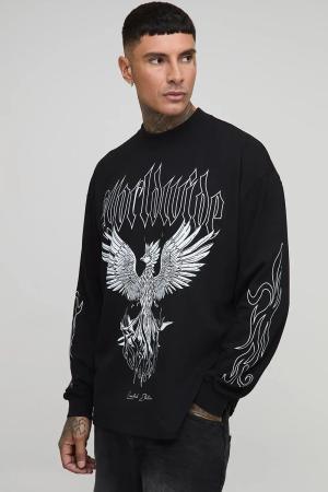 Tall langärmliges Oversize T-Shirt mit Worldwide Gothic Print - Schwarz - 2XL, Schwarz