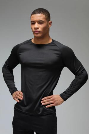 Man Active Lightweight Essentials Gym Raglan T-Shirt mit langen Ärmeln - Schwarz - L, Schwarz