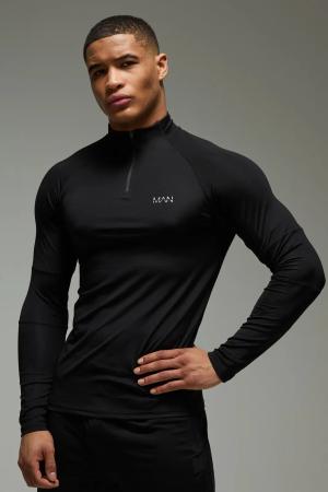 Man Active Raglan Trainingsoberteil mit 1/4 Reißverschluss - Schwarz - XL, Schwarz