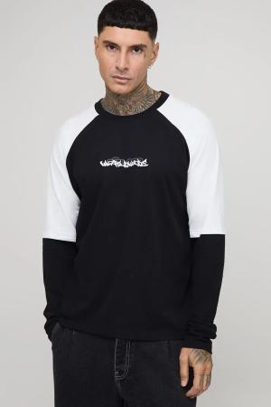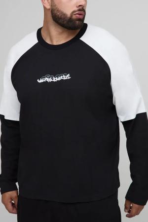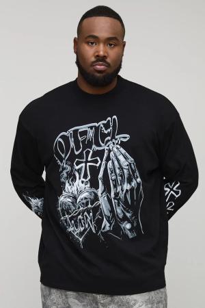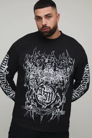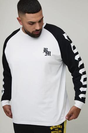 Plus Oversized BM Gothic Long Sleeve Raglan Print T-Shirt