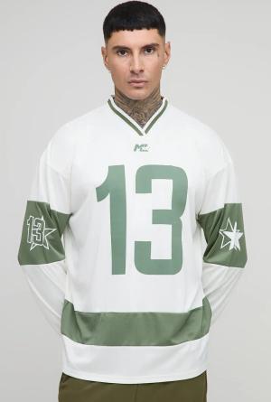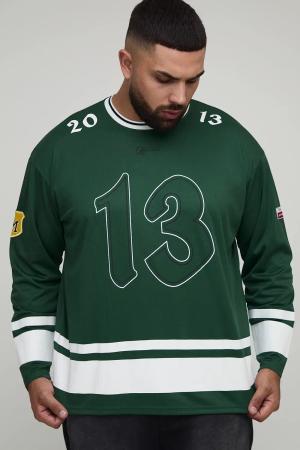 Plus langärmliges Oversize Hockey-Oberteil mit 13 Print - Grün - 2XL, Grün