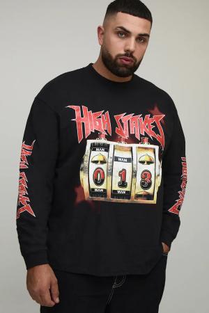 Plus langärmliges Oversize T-Shirt mit Gothic BM Print - Schwarz - 2XL, Schwarz