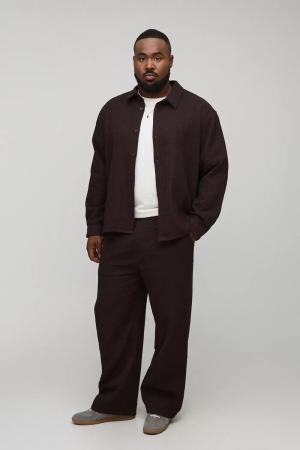 Plus Oversized Jumbo Waffle Long Sleeve Shirt & Relaxed Trouser Set - Braun - 4XL, Braun