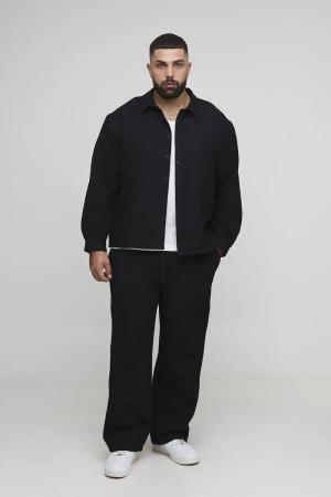 Plus Oversized Jumbo Waffle Long Sleeve Shirt & Relaxed Trouser Set - Schwarz - 2XL, Schwarz