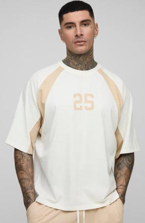 Tall kastiges Oversize Raglan T-Shirt mit Stickerei - Weiß - 2XL, Weiß