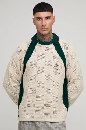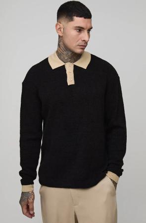 Tall Oversized Contrast Placket Knitted Polo Shirt