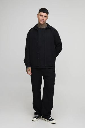 Tall Oversized Jumbo Waffle Long Sleeve Shirt & Relaxed Trouser Set - Schwarz - S, Schwarz