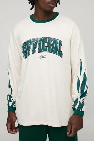 Plus langärmliges Oversize Official Man T-Shirt mit Flammen-Print - Weiß - 2XL, Weiß
