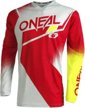| Motocross-Jersey Langarm | MX Enduro | Gepolsterter Ellbogenschutz, V-Ausschnitt, atmungsaktiv | Element Jersey Racewear V.22 | Erwachsene | Rot Grau Neon-Gelb | Größe M