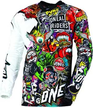 | Motocross-Jersey | MX Enduro | Gepolsterter Ellbogenschutz, V-Ausschnitt, atmungsaktiv | Element Jersey Shocker | Erwachsene | Schwarz Weiß | Größe M
