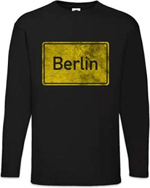 Berlin Road Sign Herren Langarm T-Shirt Schwarz Größe 2XL