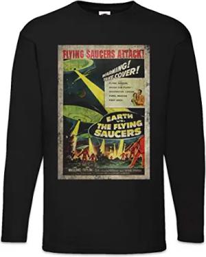 Earth Vs. Flying Saucers I Herren Langarm T-Shirt Schwarz Größe S